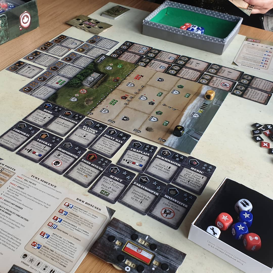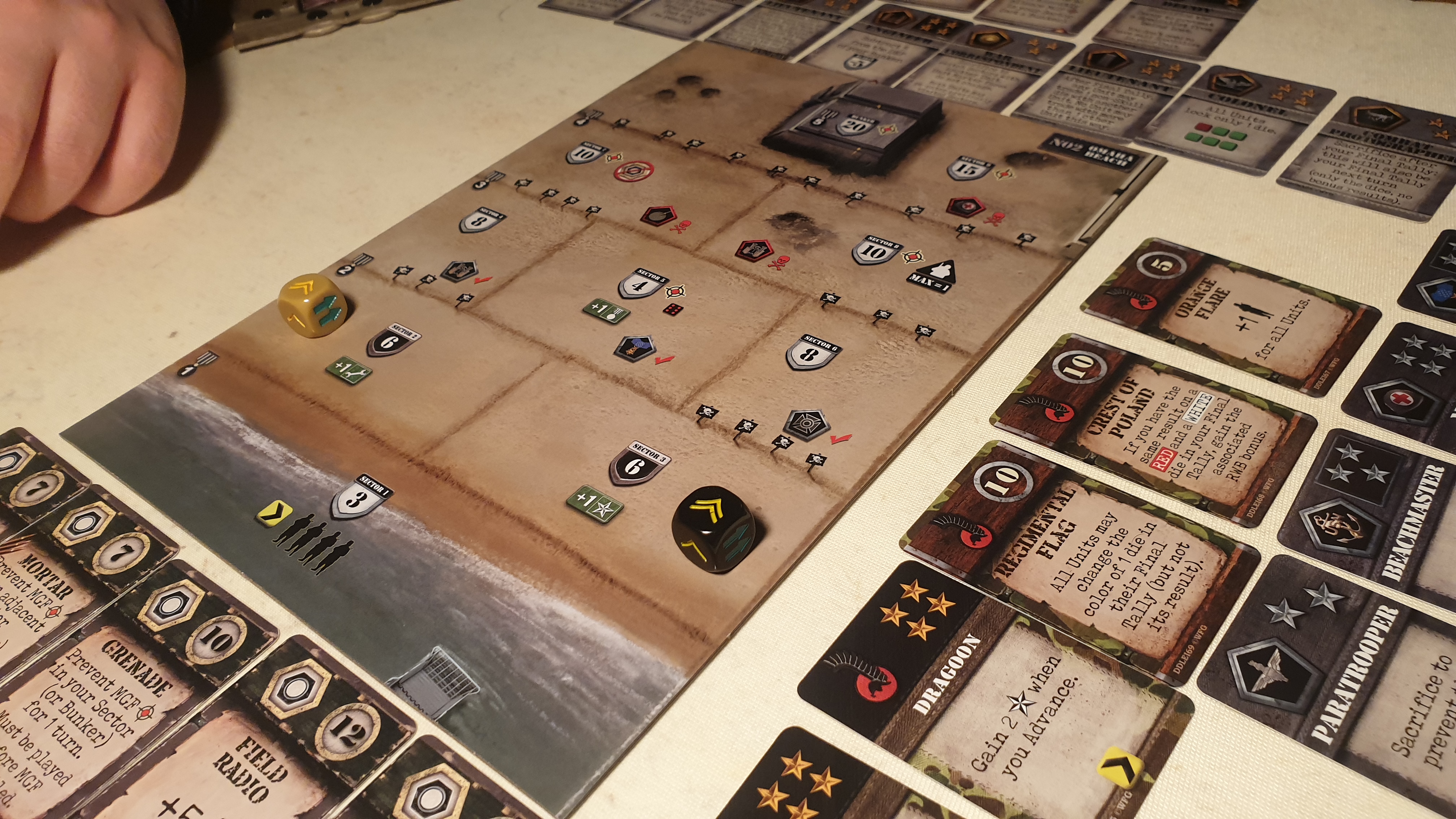 Jak wspomniałam wcześniej, D*Day Dice to nie jest spacer po plaży. Gra, ktòra teoretycznie ma być strategią, a ktòra opiera się na kościach, nie prowadzi do niczego dobrego. Mimo, że są opcje manipulowania kośćmi, to zawsze wydaje się ich za mało. Sytuacji nie ułatwia fakt, że D*Day Dice zostało zaprojektowane jako gra solowa, ale wprowadzono możliwość grania w kilka osób – jednak bez skalowania. Grając we dwoje nadal obydwie fakcje muszą się przedrzeć przez plażę i zająć bunkier. Gdy jedna fakcja polegnie, druga też przegrywa, niezależnie od tego jak dobrze sobie razi.