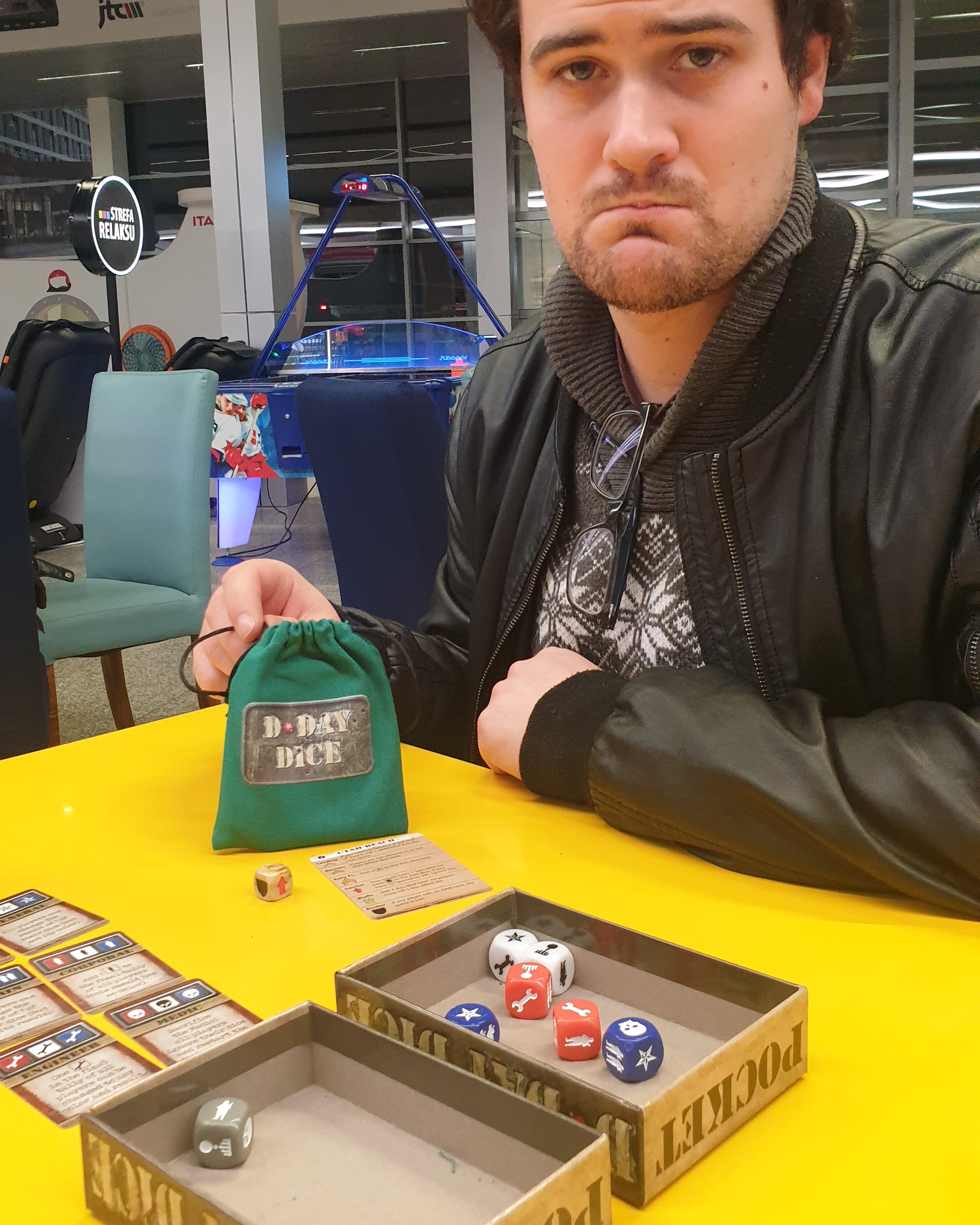 D*Day Dice Pocket to, jak z nazwy wynika, wersja kieszonkowa tej gry. Mniejsza jednak nie znaczy łatwiejsza. Nadal musimy przedrzeć się przez sześć stref plaży, mamy do wyboru mniej specjalistòw i nadal rzucamy kośćmi tylko trzy razy.